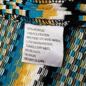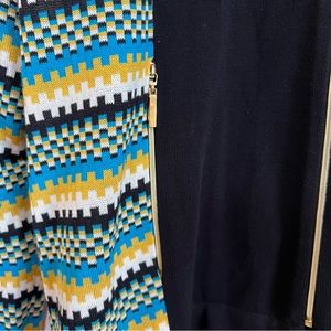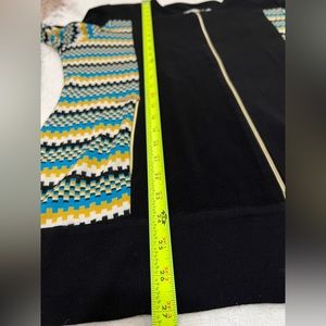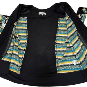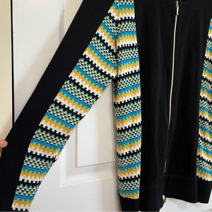 Exclusively MISOOK Full Zip Black Knit Blouse Long Sleeve Geometric Stripe XL