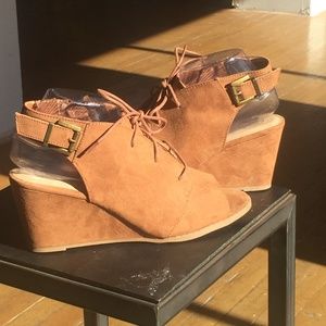 American Heritage Faux Suede Brown Open Toes Thick heel Sandals