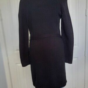 New York & Co - Cable Long Sleeve Tie Waist Cardigan Seater Coat Black