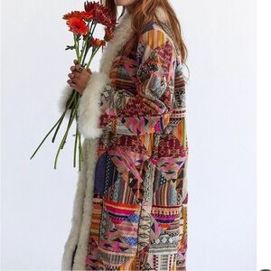 NWOT Free People Caravan Patchwork Dream fur trim Coat Sz L