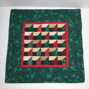 Vintage 90s Hand Made Quilted Christmas Wall Hanging Attic Windows Quilt 18"X18"