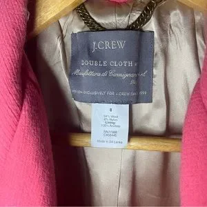 Like New J.Crew Double-Breasted Coat, Italian Double Cloth In Pink - Size 8