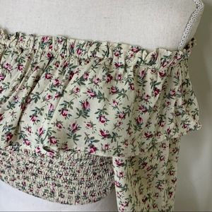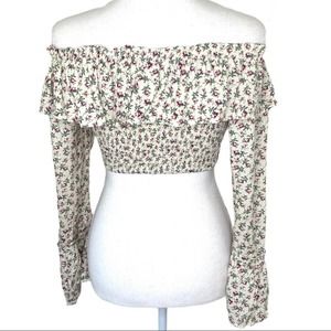 Floral Off-The-Shoulder Smocked Bell Sleeve Crop M