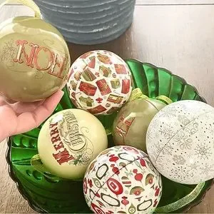 🤶🏻SOLD🤶🏻 Set of six refillable metal Christmas ornaments 3" Diameter
