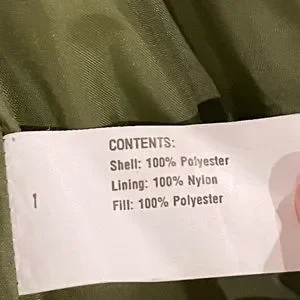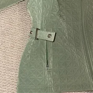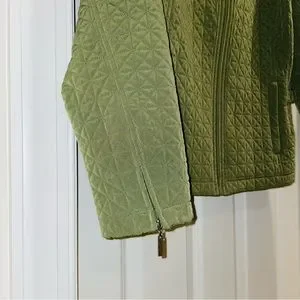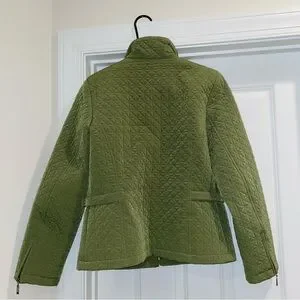 Gallery quilted jacket in olive green. In like-new condition. Zippered pockets and sleeve openings. Side waist snaps. Definitely feels waterproof. Comes from a smoke-free home.