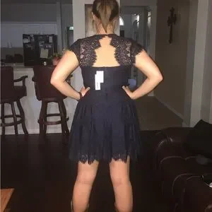 This dress is so soft and comfortable! Cute lace top with key hole back! Very lightweight - great for summer events!