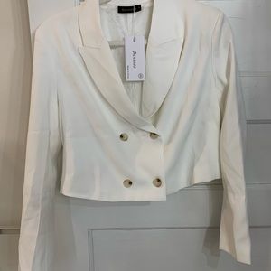 Beninos Women's Double Breasted Crop Blazer Jacket - S - Cream