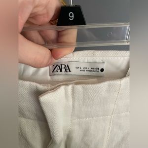Zara Ss22 Oyster White Linen Blend Straight Pants Womens Size Large