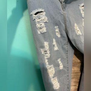 Never worn, light wash, destroyed denim from Pretty Little Thing.