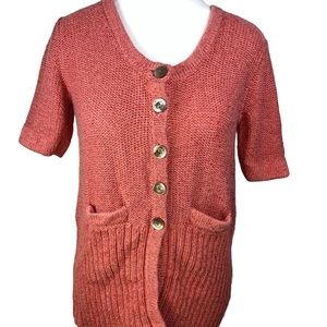 J. Jill Button Knit Cardigan Sweater Cotton Blend Pockets Ribbed Size XS Pink