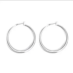 Classic Elegant 925 Sterling Silver Round Hollow Hoop Earrings
