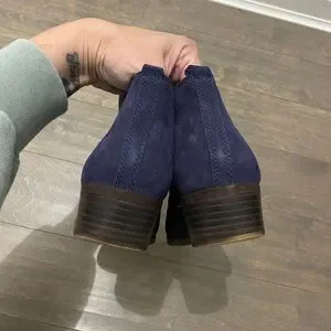 Lucky Brand Navy Blue Embroidered Basal Ankle Boots