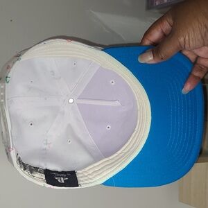 After Hat had been laundered, the inside tag which shows the size some of the color came off the tag but the color that came off the tag did not get on the hat. Facing the front of the hat, left side near the game controller is slightly out of shape but the Hat is still wearable and has age plus wear and tear.