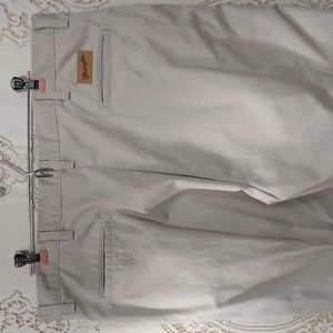 good condition Wrangler khaki pants 38x36 100% cotton made me USA button and zipper work no fraying at angles.