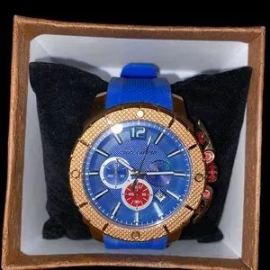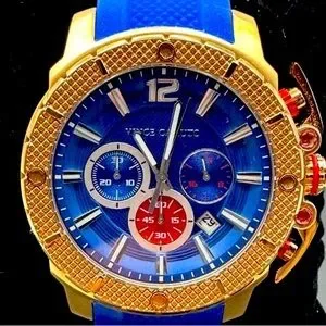 EUC Vince Camuto VC/1019BLRG Striker WATCH Rose Gold Tone Blue Resin Strap/See detailed description in photos