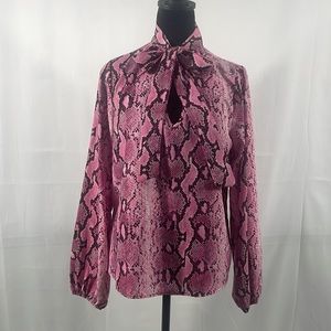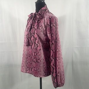 Pink, Black, Grey Snakeskin, front bow tie front, key hole, long sleeves,medium