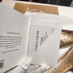 Comes with all original packaging and receipt (i.e., red dust bag, extra heel tips, ribbon, box, paper bag)