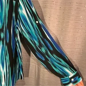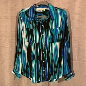 Jones New York Sport Multi Color Two Pocket Long Sleeve Button Down Blouse