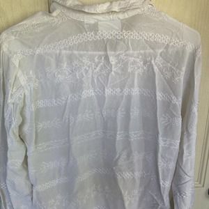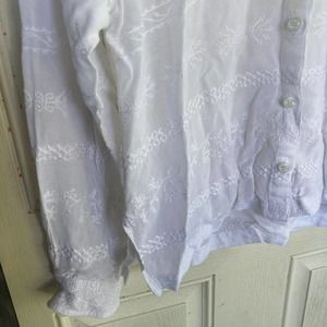Vintage Chicos Button Up Shirt Long Sleeve Sz 1 Medium Embroidery Sheer Rayon.