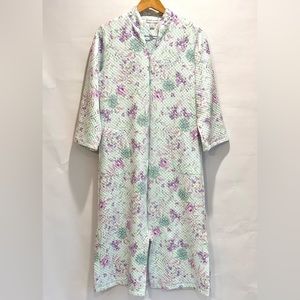 Miss Elaine Quilted Floral Robe Zip Close with Matching Short Sleeve Nightgown.