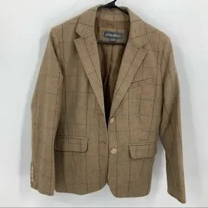 Eddie Bauer wool blend herringbone check double button lined blazer jack…