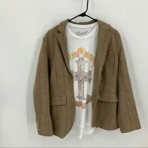 Eddie Bauer wool blend herringbone check print double button fully lined blazer jacket