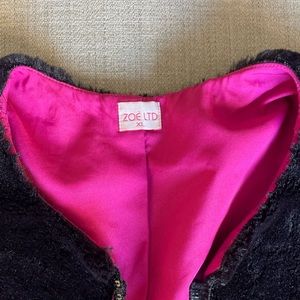 Faux Fur Caplet shrug w Sequin lace tie closure pink lining w 3/4 inch sleeves .