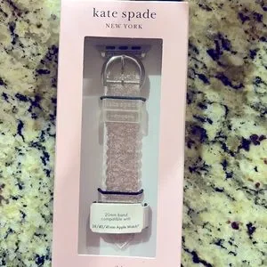 Kate Spade Apple Watch Band. Brand new in box. Great Christmas gift. Light pink with glitter. Transparent look. Fits 38/40/41 mm watches. 20 mm band. Please pay attention to size of band and ensure fit as NO RETURNS ON OPENED/USED ITEMS WILL BE ACCEPTED!