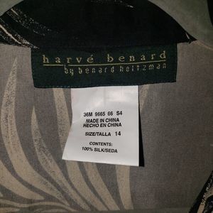 Harve Benard 100% Silk 2-Piece Outfit Set Button Up Shirt Top & Crop Pants Sz 14