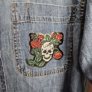 Great preowned condition no stains or flaws Has been upcycled with several patches, rhinestones, etc, see all pictures