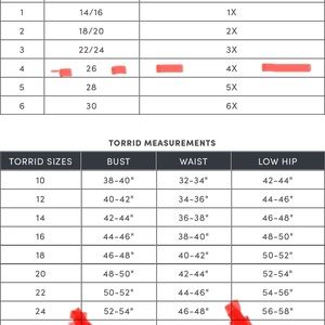 One: Torrid Size 3 AND one Torrid Size 4 (NWOT) either of these were never worn. Purchased both and hung in my closet. No flaws noted, the faux leather material feels and looks like real soft leather! Beautiful (working) zipper details on pockets and sleeves. Silver color snaps on collar. All hardware has silver tone. Please see all photos for style, details, approximate measurements and conditions. This is the exact item you will receive. Stock photo included to show what it looks like on a model. Torrid size chart included - (see last photo). Fast shipping next day after purchase. Kept in a Smoke free environment. Thank you for browsing my Closet!❤️💕