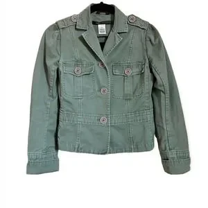 Marc Jacobs Womens Utility Jacket Button Front Sz 2 Green Long Slv Cotton