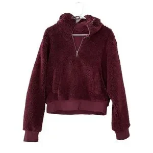 Lululemon textured fleece half zip in color Merlot red size 8 in excellent condition! Lululemon fuzzy hoodie with pockets and adjustable hood. Retails $140