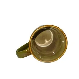 Beautiful green ceramic mug with an embossed owl design and soft earthy tones.