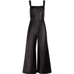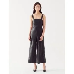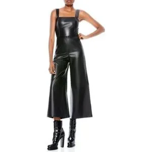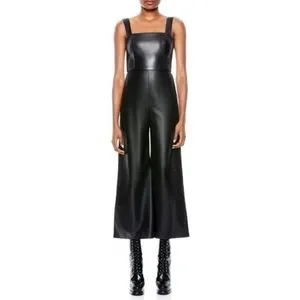 Alice+Olivia Avelina Black Vegan Leather Wide Leg Jumpsuit Size 2
