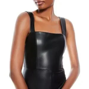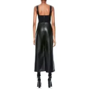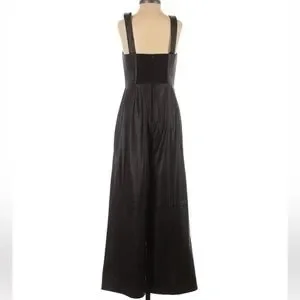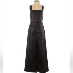 Alice + Olivia Avelina Black Vegan Leather Wide Leg Jumpsuit Size 2