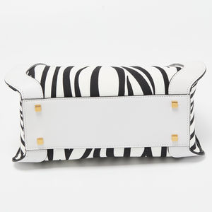 VALENTINO White/Black Zebra Print Canvas and Leather Small VLogo Tote