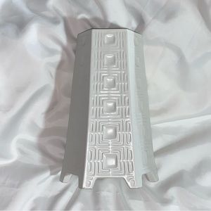 pre-loved, authentic, JONATHAN ADLER mid century modern inspired, large & tall footed hexagon vase with all over repeating square design esthetic. EXCELLENT PRE-OWNED CONDITION, vase shows light normal wear at base of feet from being slid around while cleaning/dusting. The Jonathan Adler paper tag is missing from the base of this item.