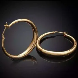 New 18K Yellow Gold 1.5” Round Hoops Earrings