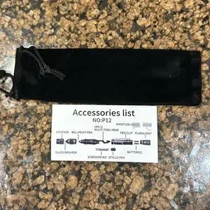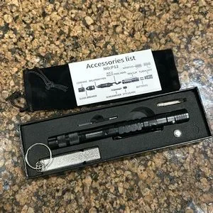 New 12 in 1 Tactical Pen Multitool Survival Pen. This pen features 12 in 1 tools including pen, flashlight, screwdriver, compass, multi head tool, glass breaker, etc. very neat gift for Christmas! Comes in a black box with a pouch for the pen. Comes from smoke free home.
