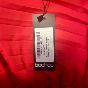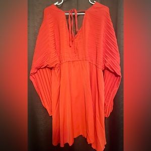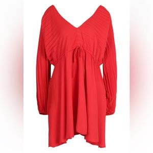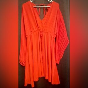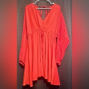 Boohoo - BATWING PLEATED PLUNGE SKATER DRESS in color rust. Dress is more of a bright red color. New. Never worn.