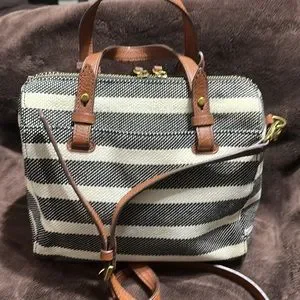 Fossil black stripe satchel/ crossbody. 10” L x 5” W x 8” H