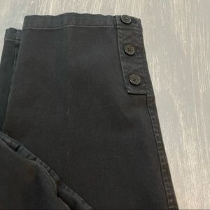 EUC. Black capris with button detail. Size 6 Petite. Stretchy. Front and back pockets. 52% cotton, 41% rayon, 7% spandex. Waist lying flat ~14". Rise ~8.5". Inseam ~20".