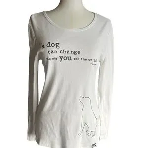 Dog is good long sleeve T shirt See measurements below for sizing. Cute shirt!