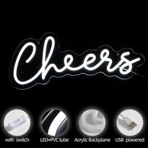 Neon White Cheers Text Wall Hanging Anniversary Wedding Birthday Cute LED Sign