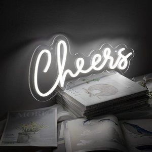 đź’‹Trendy & chic neon white "cheers" sign. Perfect aesthetic for wedding, celebration, festival, kitchen/cafe/restaurant, dorm, office/work space, bed/living room, photo prop, events & birthday party!