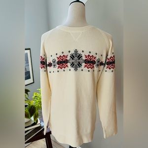 EDDIE BAUER Sweater Nordic Snowflake Legend Cotton Blend Crew Neck Raglan Ivory Red Black Large.