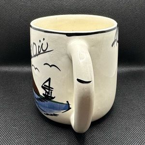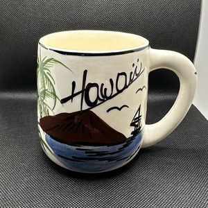 Pair of hand painted ceramic mugs from Rainbow Ceramics, made in Hawaii in 1986. In great condition given their age. Measures approximately 3.75” tall and 3” wide at the mouth.