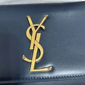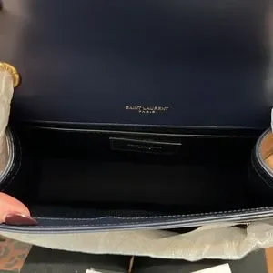 New YSL Yves Saint Laurent Kate Flap Navy Leather & Gold Chain