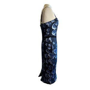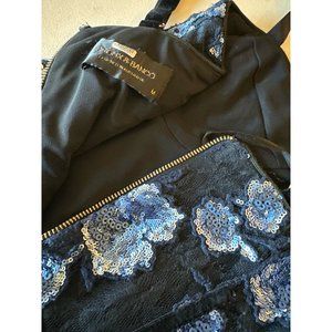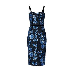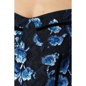 Bronx and Banco Camille Pencil Dress in Navy Sequin Medium New Womens Midi Lace